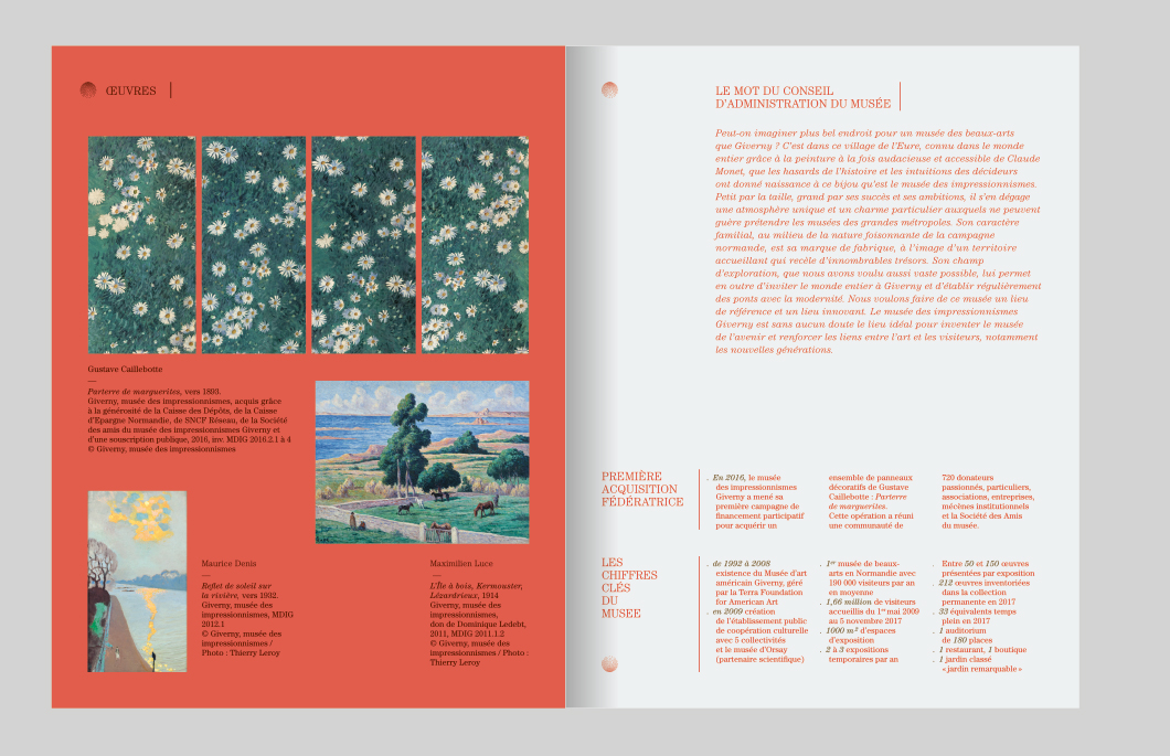Identité visuelle du Cercle des Mécènes des impressionnismes Giverny. La combinaison du M des Mécènes et du I des impressionnismes est auréolée du point du i, devenu constellation.