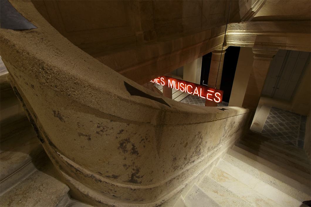 Création d’un lettrage néon pour la scénographie de l’exposition « Comédies musicales » du CNCS. Création d’une typographie stencil spécifique au sujet de la comédie musicale et qualibrée pour le façonnage en néon. Centre national du costume de scène . 2018 . Moulins.