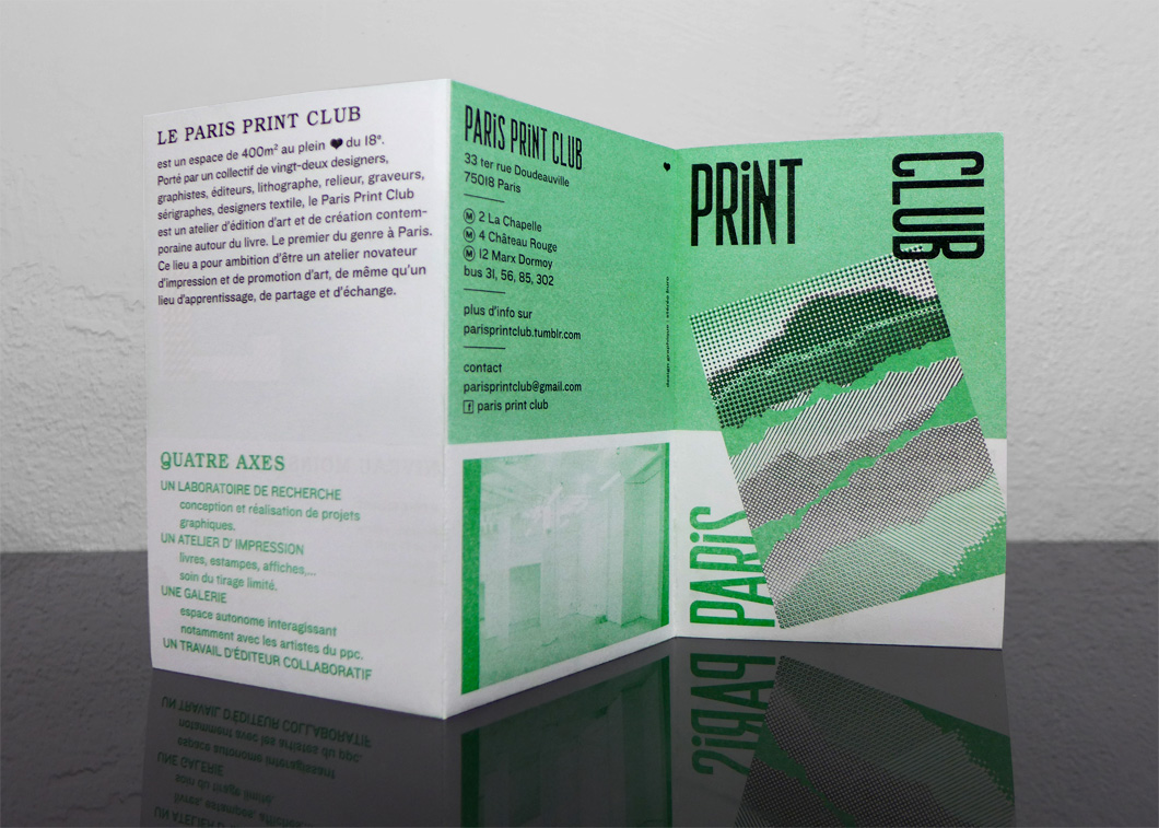 Design des supports de communication du Paris Print Club, atelier novateur d’impression et de promotion d’art.