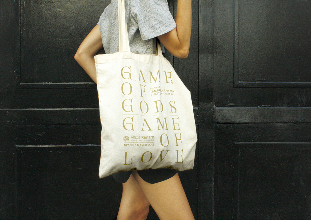 - La galerie Alexis Renard nous confie une nouvelle fois la réalisation de son catalogue d’exposition “Game of gods / Game of love”, autour de la thématique épique du divin et de l’amour : God, Love. Dans la continuité de la famille typographique “Belbet” nous avons dessiné un caractère de titrage d’inspiration lombarde. Des illustrations au trait viennent ponctuer les œuvres du catalogue.