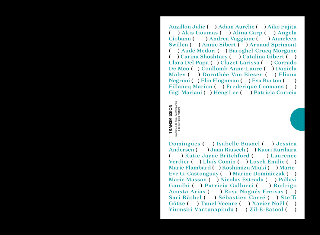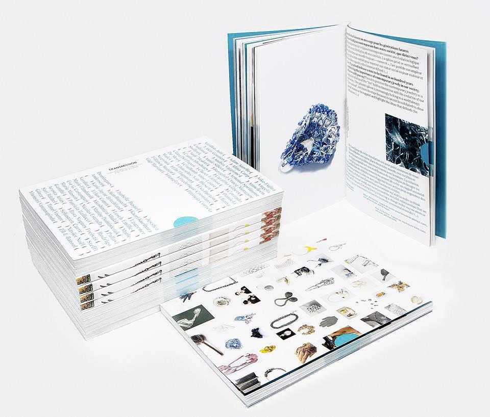 Design éditorial du catalogue d’exposition “Transmission” Studio 411, galerie d’art Exposition de bijou contemporain . 2015 . Montpellier