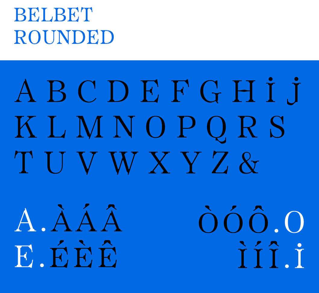 - Création un caractère de titrage Belbet rounded, de la famille Belbet type. Ses empattements ronds font écho à la rondeur des carreaux de Damas.