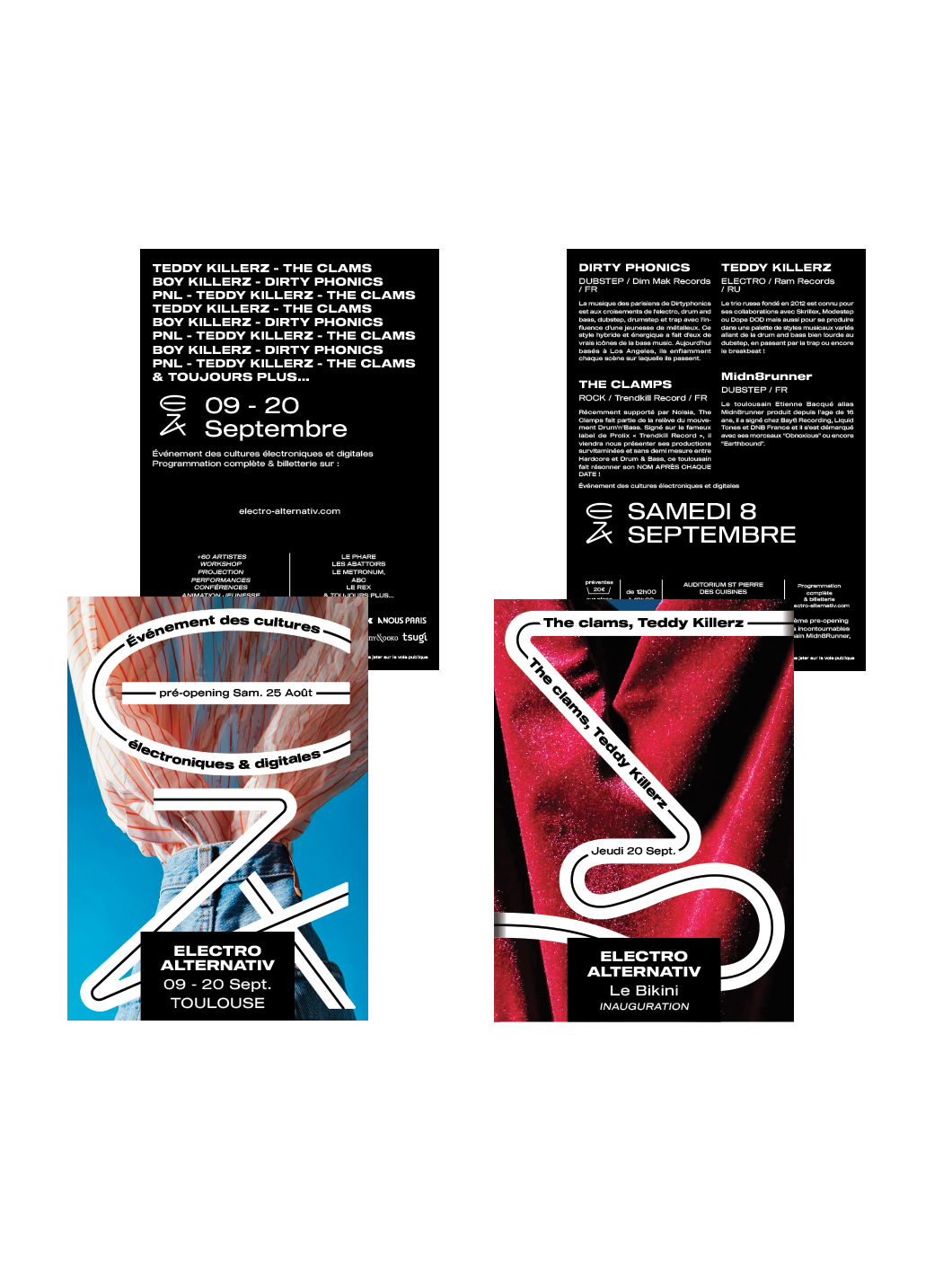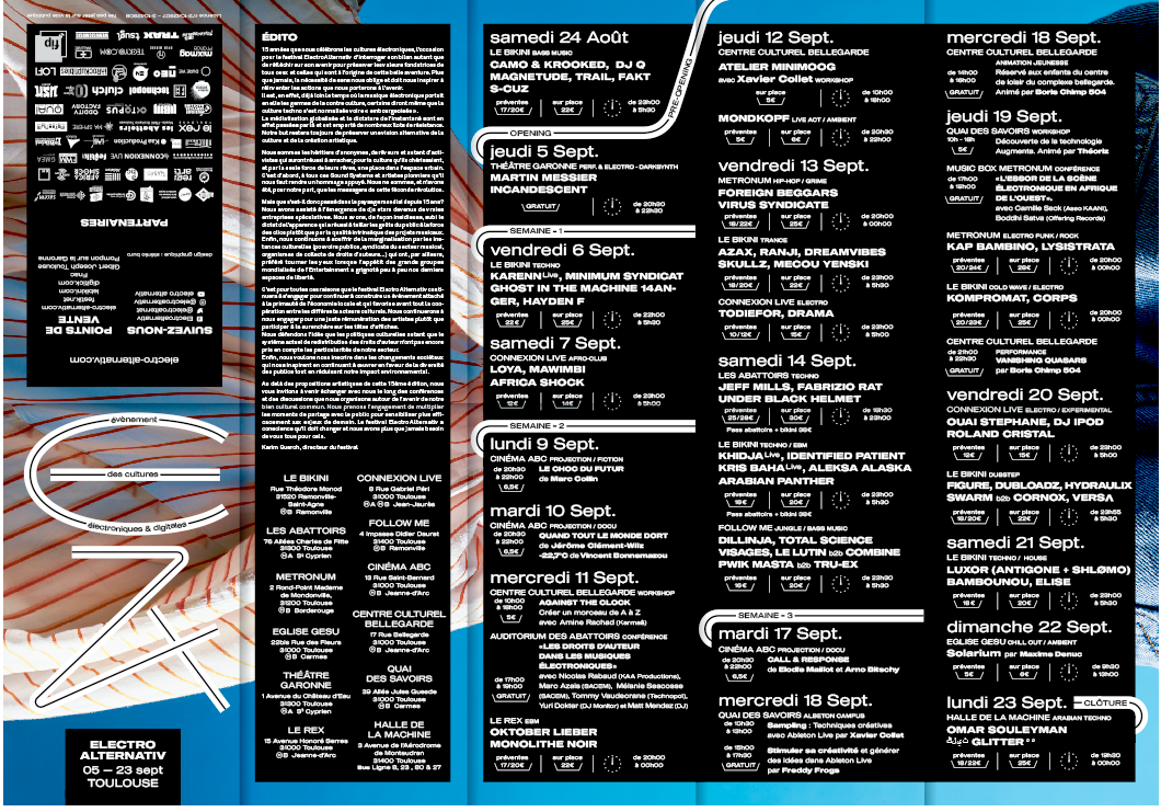 Direction artistique te graphique pour la communication du festival de musique toulousain Electro Alternativ, le festival de culture électronique évolue depuis 15 ans dans le paysage toulousain.
