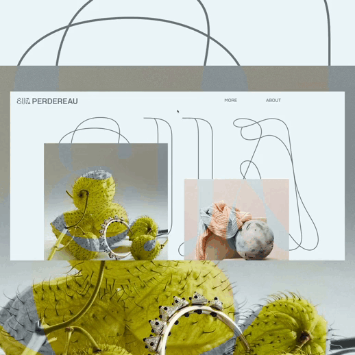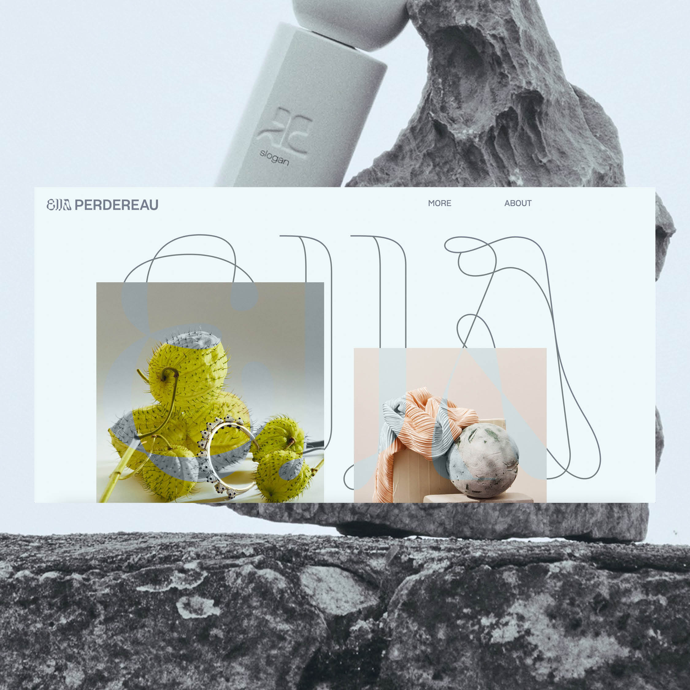 Nous avons dessiné un système de lettrage qui combine son ossature bouclée filaire et ses formes pleines. Le principe de navigation accompagne ce glissement des formes entre elles et le dialogue qui se crée avec les images en superposition.