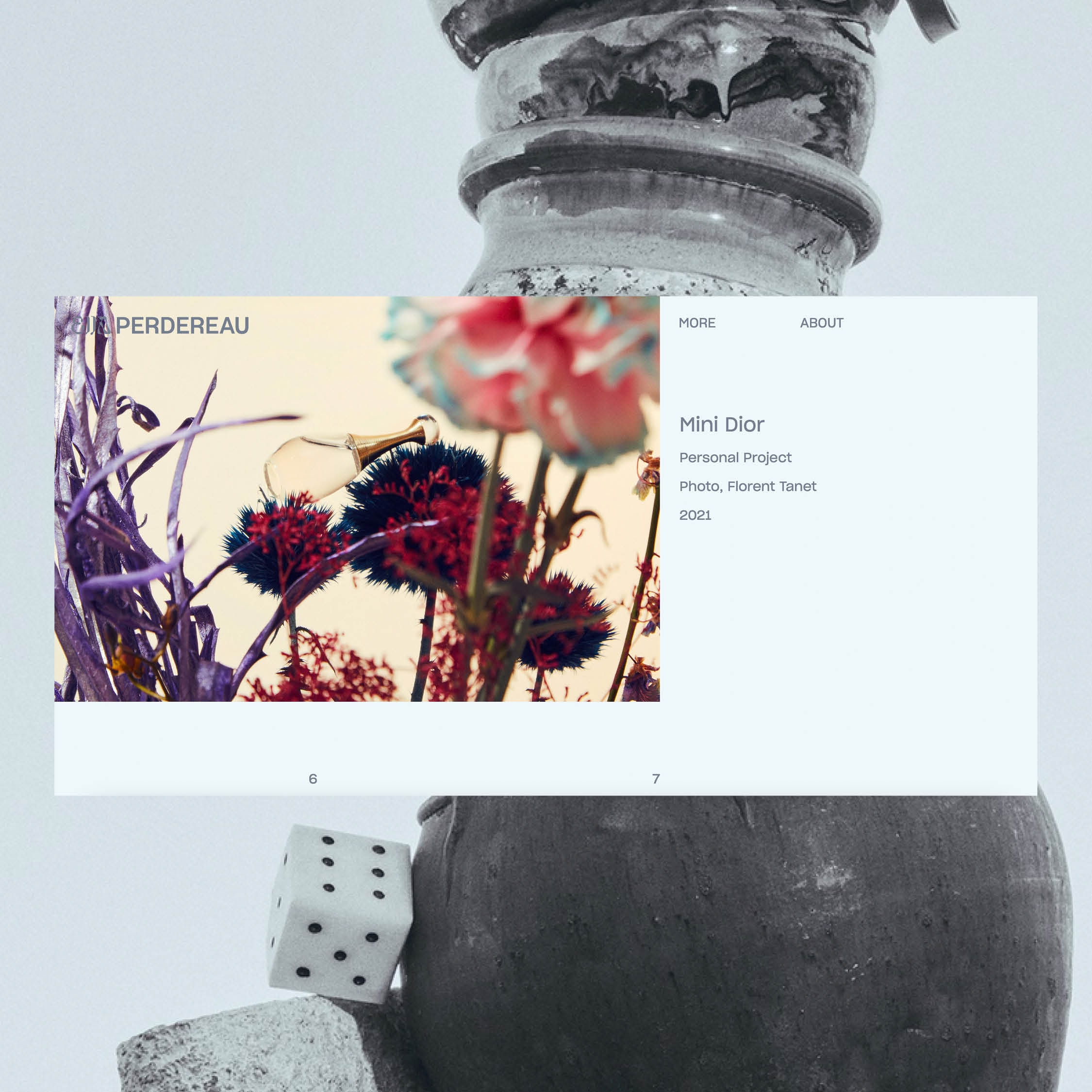 Ella travaille ses mises‐en‐scène de produits de luxe avec des lumières artificielles et des matières naturelles auxquelles elle ajoute le regard du photographe. Ce travail subtil se concentre sur l’équilibre des compositions et l’apport sensible des éléments fleurs/pierres/bois/mousses,… et la poétique de leur présence.