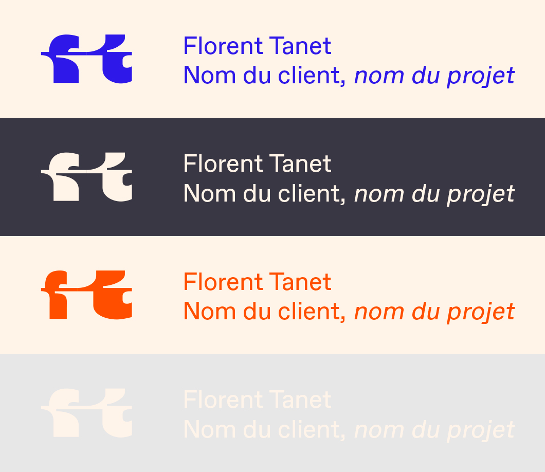 Le sigle FT aux formes mouvantes volontairement cartoonesques représente la vie et le jeu, deux lignes conductrices qui instinctivement guident le travail de Florent.