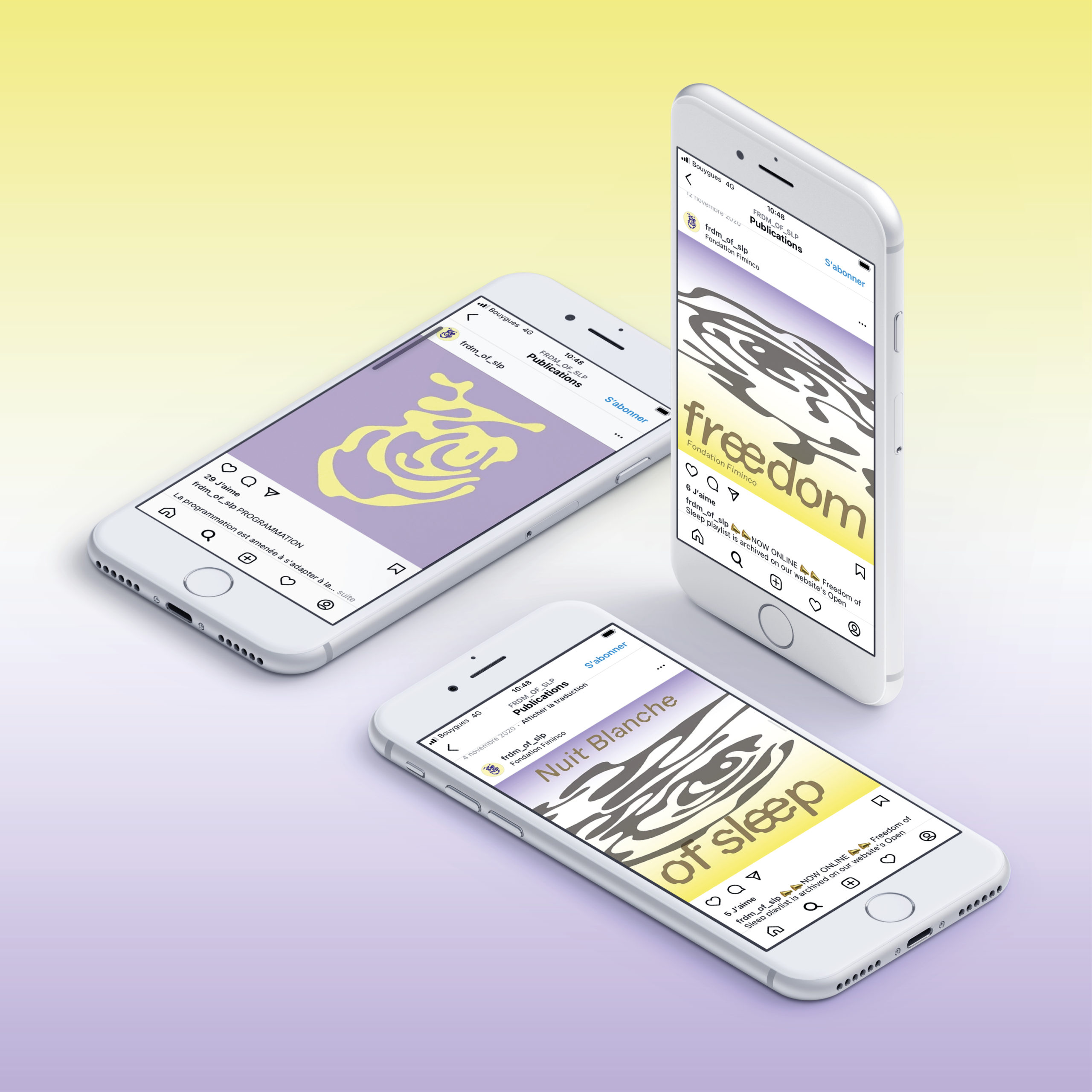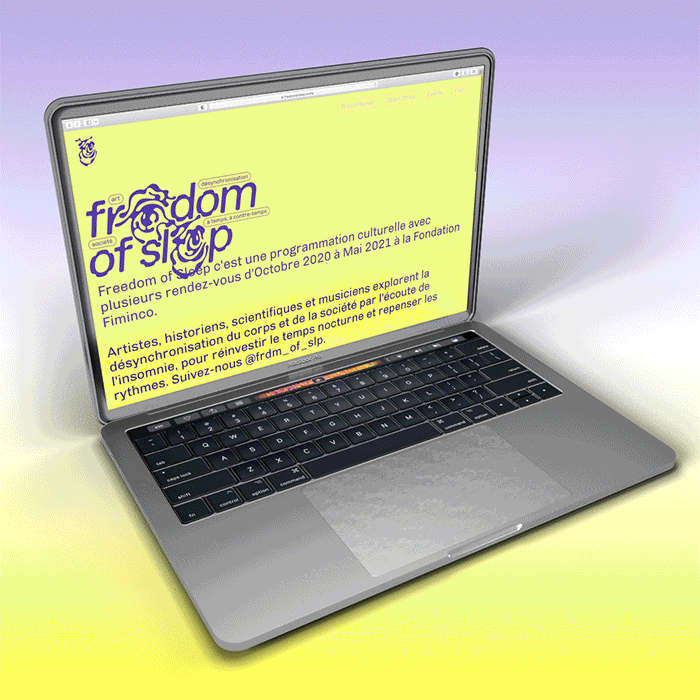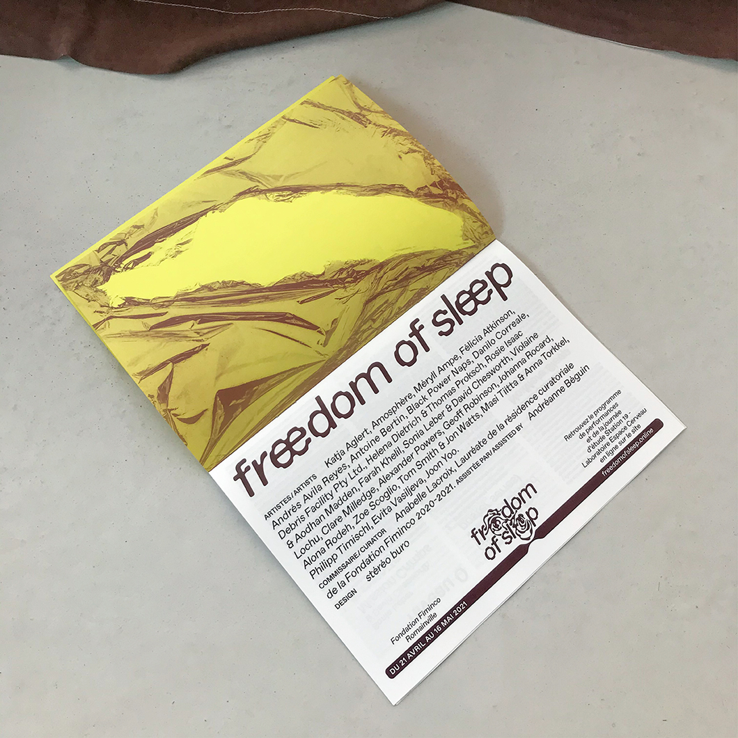 Nous avons réalisé l’identité de la résidence curatoriale sur l’année 2020–2021. Logotype, typographie, site‐web freedomofsleep.online , supports imprimés et signalétique d’exposition.