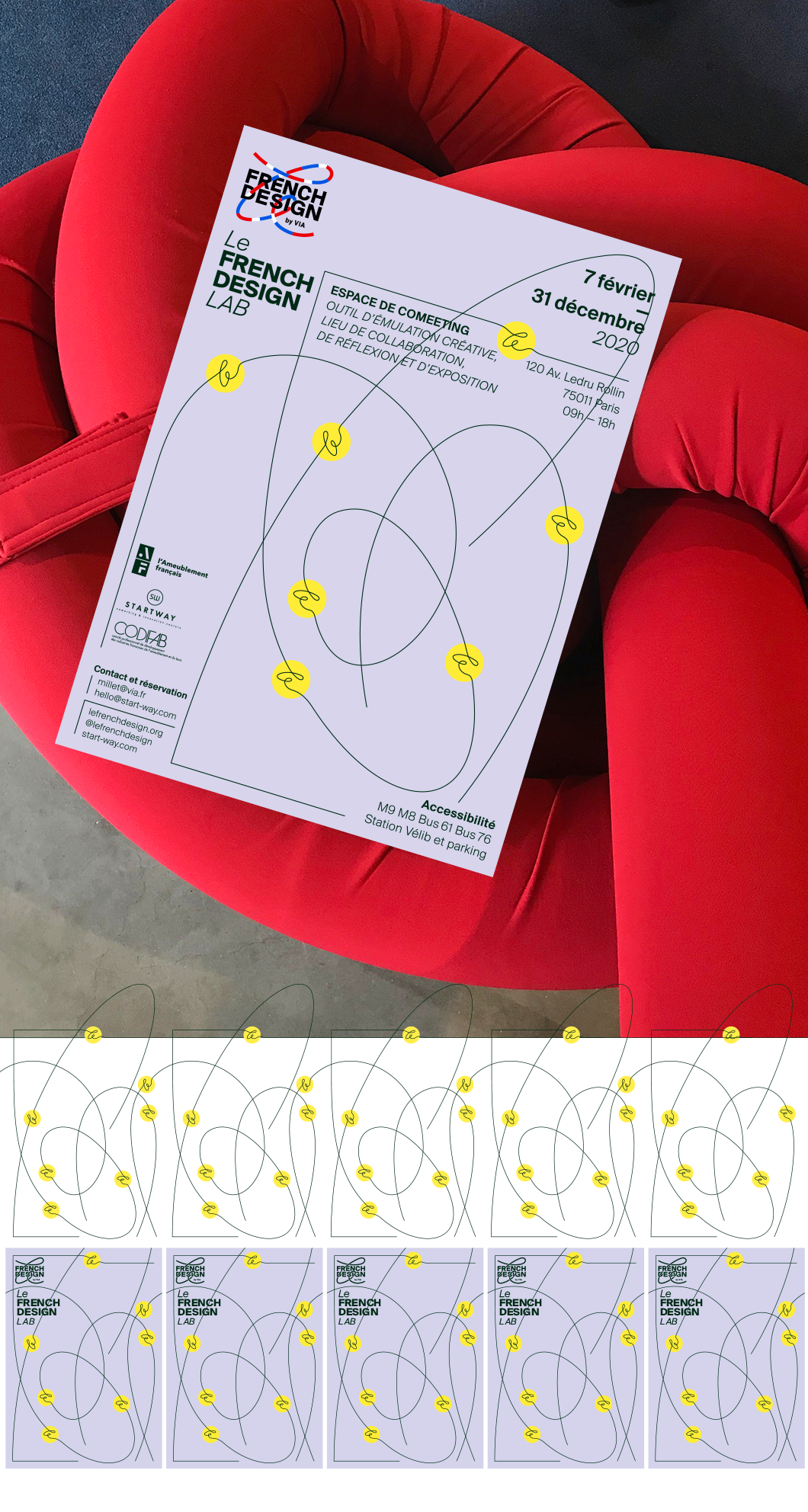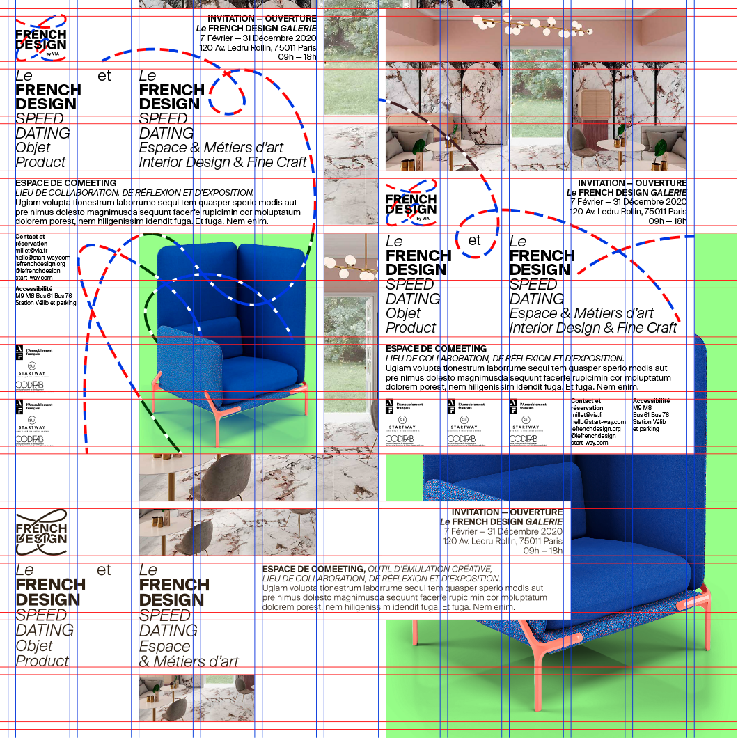 La refonte de son identité visuelle se base sur l’idée de la signature : le « le » francophone vient lier le bloc « FRENCH DESIGN » anglophone et confère au logo une légèreté, un registre de l’écrit synonyme de création « à la française ». Le système des services internes et des informations complémentaires devient un registre graphique global qui s’harmonise autour d’une grille modulaire carrée.