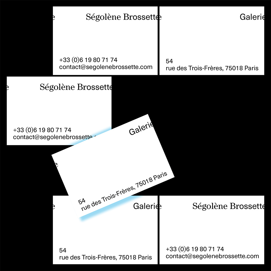 Conception de l’identité visuelle de la galerie d’art contemporain Ségolène Brossette.