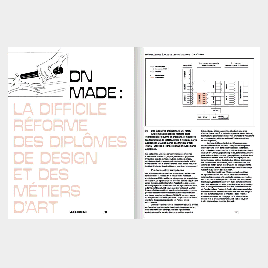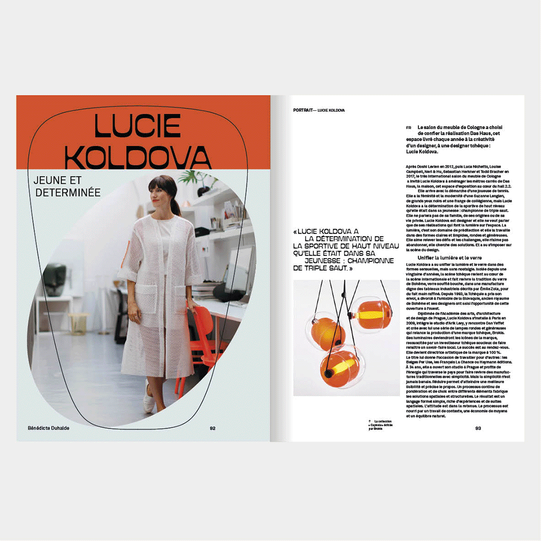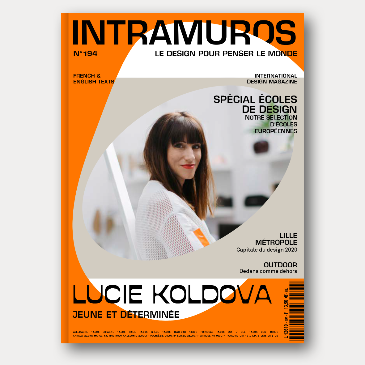 Le n° 194 met à l’honneur le travail de Lucie Koldova, une designer tchèque spécialisée dans les sculptures en verre. Le travail de L. Koldova se caractérise par l’approche artisanale du verre soufflé et des techniques de combinaisons de matières de verre fondus et de bois brut. Une typographie ou les pleins et les déliées sont inversés, un jeu de forme et contre‐forme, des ovales. Un dossier central sur une sélection des meilleures écoles de design, une nouvelle typographie, et des illustrations de Lisa Mouchet
