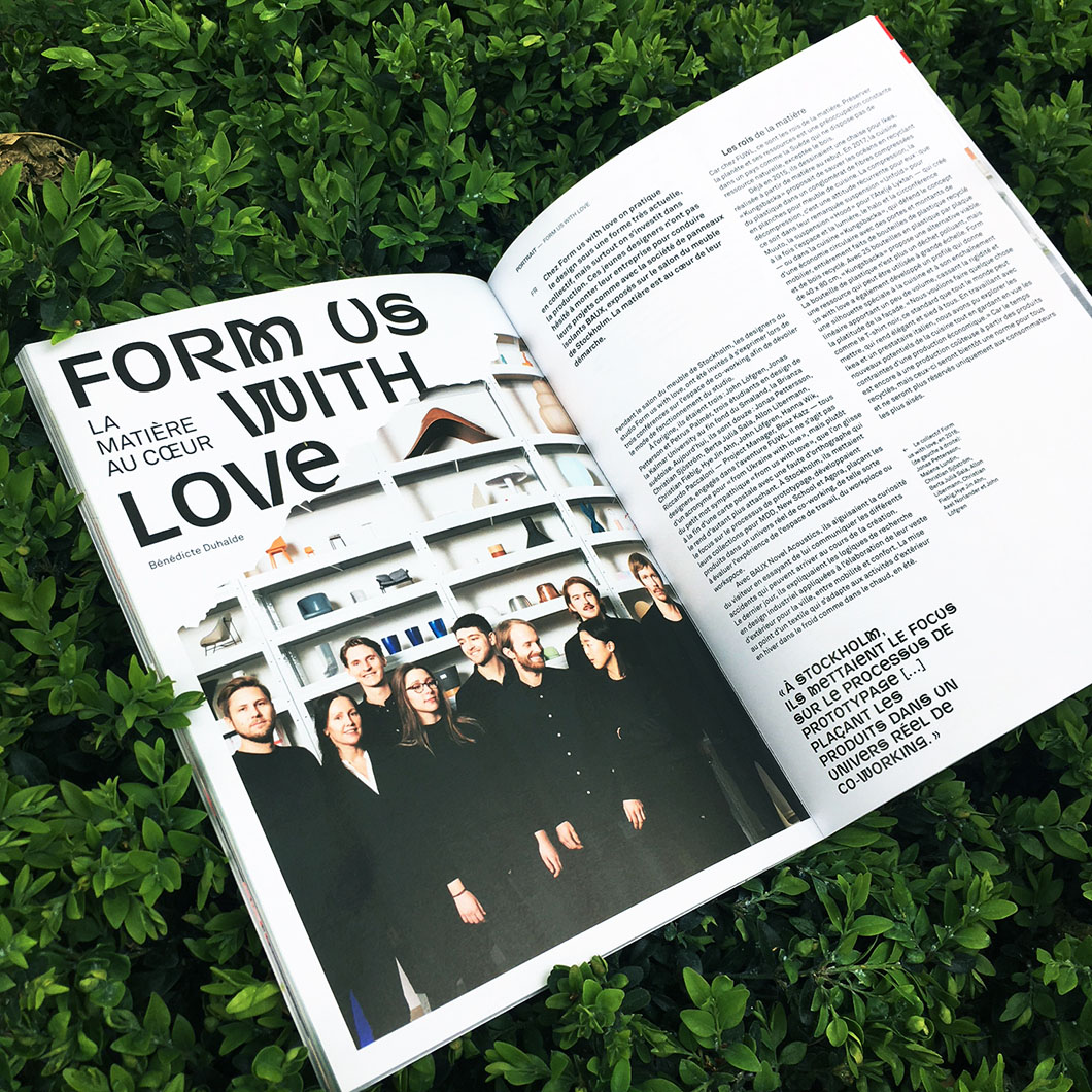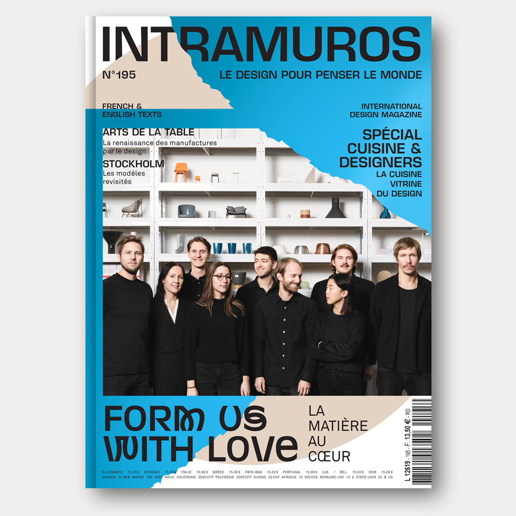 Le n° 195 met à l’honneur le travail du collectif Form us with love. La matière est au de leur démarche écologique. Matières au rebut, conglomérat de fibres compressées, compression, décompression, «préserver la planète et ses ressources est une préoccupation constante dans un pays comme la Suède qui ne dispose pas de ressource naturelle exceptée le bois».