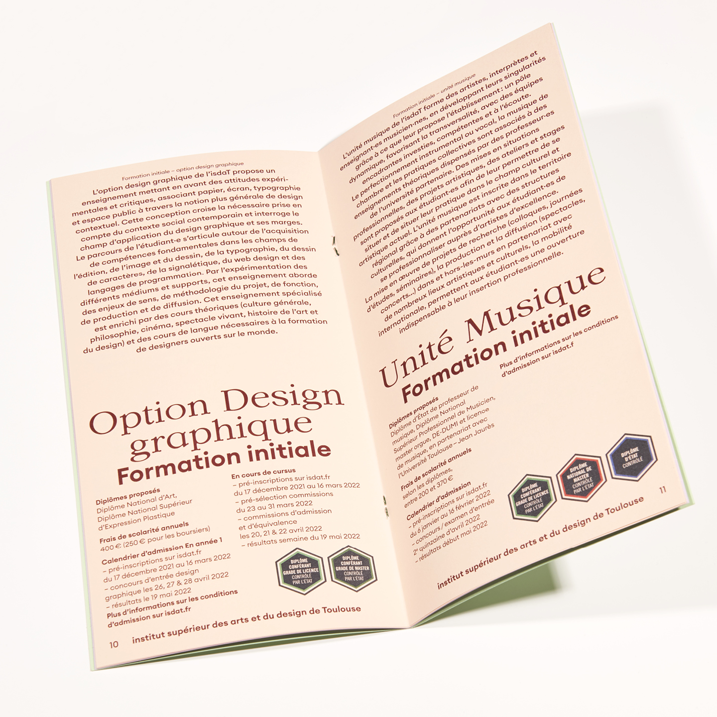 L’institut supérieur des arts et du design de Toulouse rassemble x 5 formations d’excellence : l’art, la musique, la danse, le design et le design graphique.
