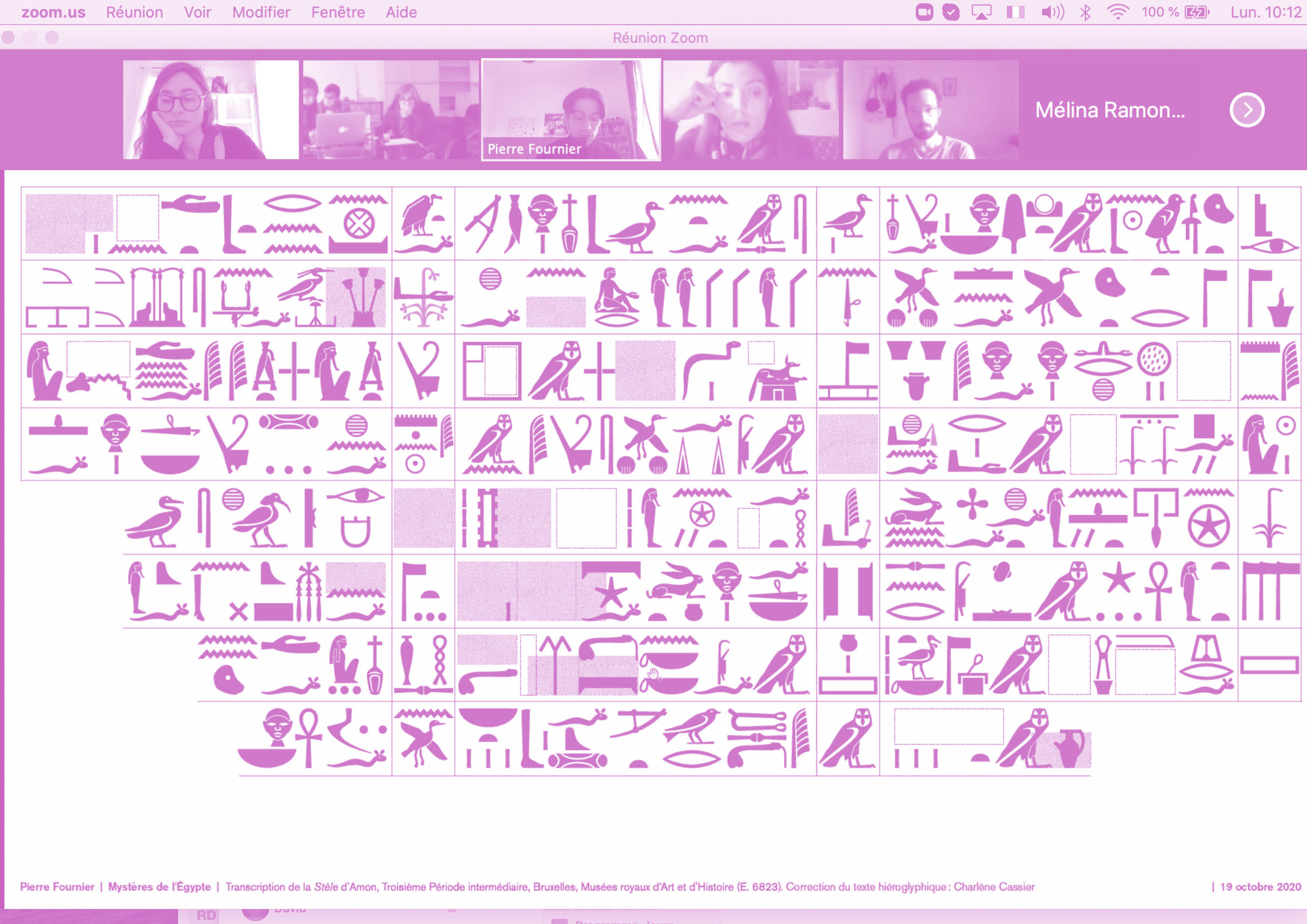 (…) il y en a un, il a une carte postale d’un âne chez lui et décide de mettre un âne. Puis moi, quand je regarde les étoiles j’ai le sentiment que je me sens plus humain, du coup j’avais envie de mettre des étoiles, etc. Chacun peut se raconter des histoires. Parfois il ne la raconte même pas aux autres, l’inclut dans l’image et l’autre trouve cela superbe, mais pour une autre raison. Avant tout, on fait des images. On peut se parler des heures, mais visuellement, c’est ce que chacun voit et comment chacun à un moment va trouver l’image équilibrée… il y a aussi la culture du consensus, on travaille collectivement, on sait que parfois il faut lâcher. (((Interview du Collectif Formes Vives réalisée par Silvia Dore, décembre 2019.)))