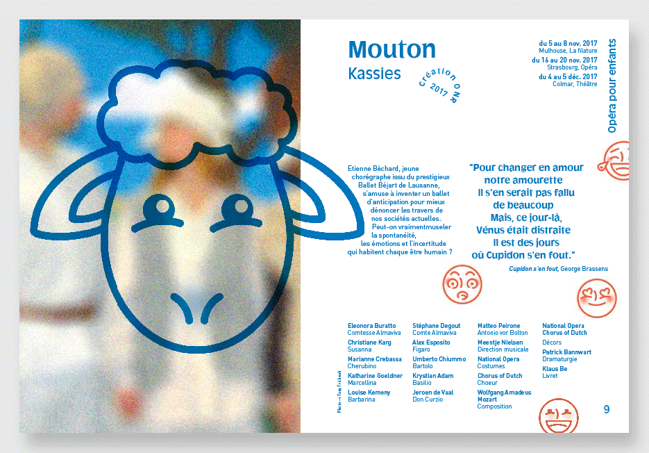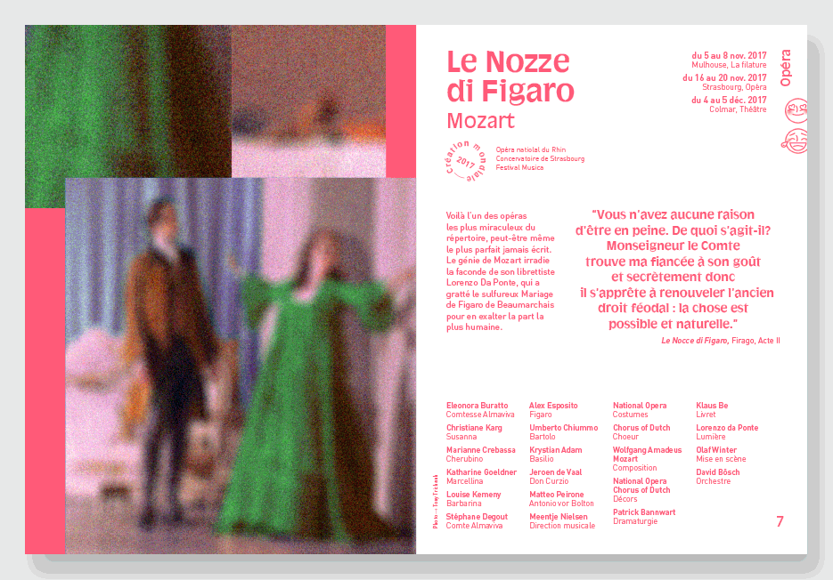 Identité visuelle de la saison 2017–2018. Deuxième phase du concours, projet non retenu Opéra National du Rhin – Strasbourg .