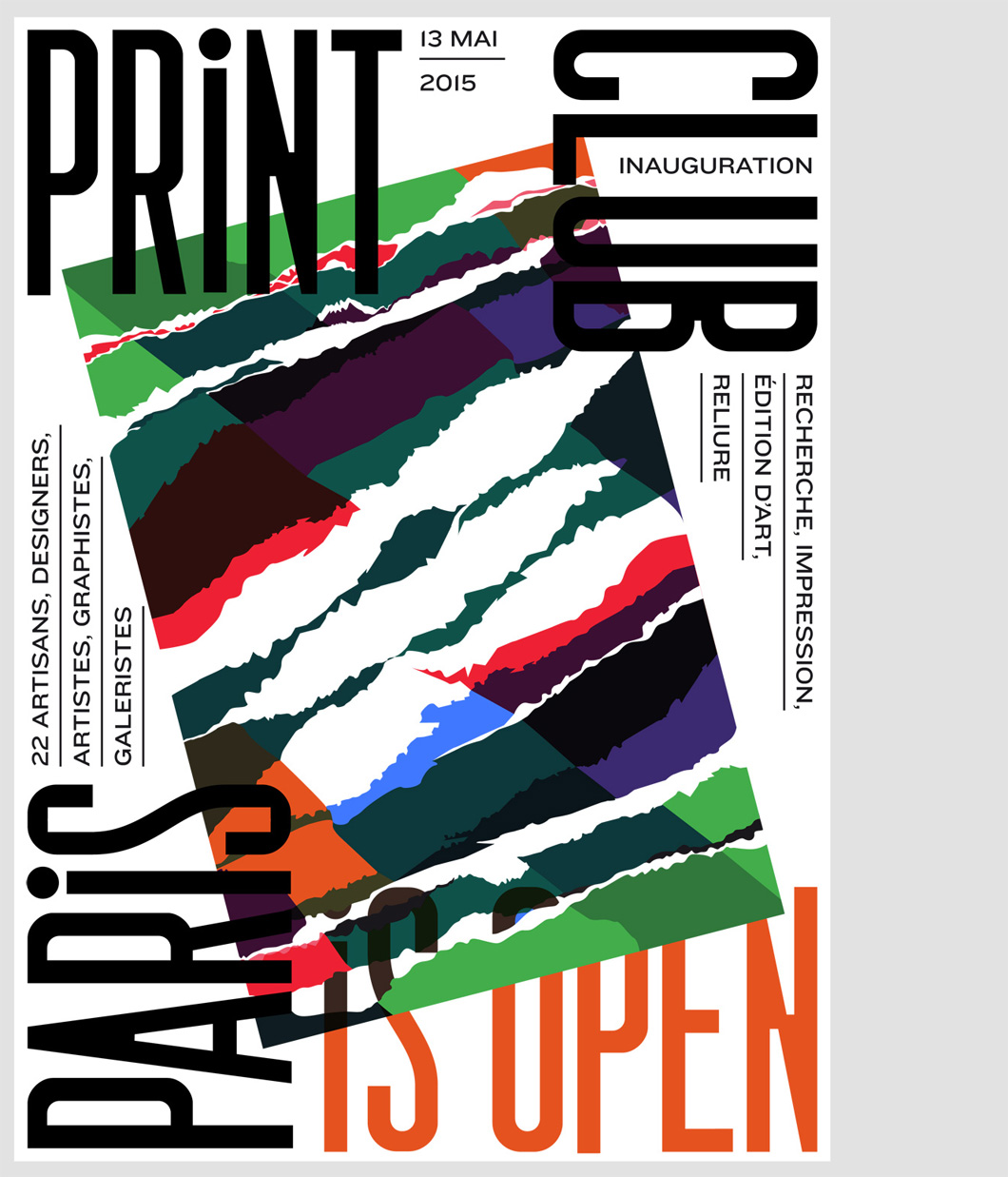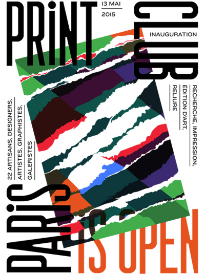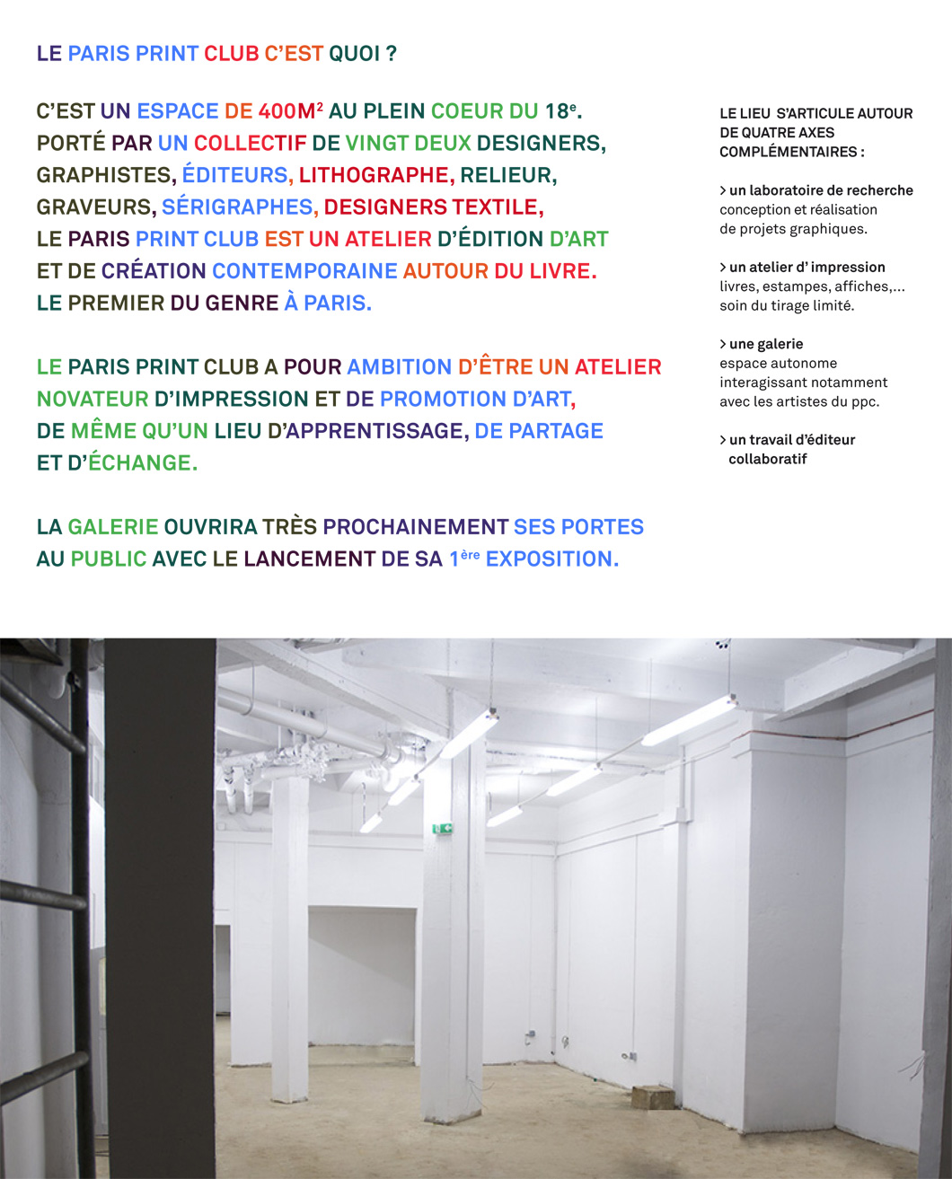 Design des supports de communication du Paris Print Club, atelier novateur d’impression et de promotion d’art.
