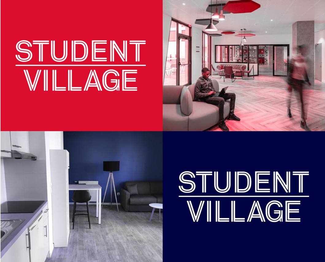Identité visuelle de la firme de résidences étudiantes Student Village.